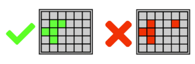 Для получения выигрышной комбинации должно выпасть 5 или более смежных символов в любом месте игрового поля.
